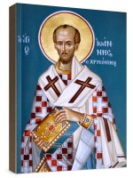 Икона иоанн златоуст. Икона на заказ. Срок изготовления - 1-2 недели. Изображение нанесено на основу из натурального хвойного дерева методом прямой печати (не полиграфия). Деревянная основа иконы подвержена искусственному старению. Лик покрыт специальным лаком, что защищает икону от воздействий окружающей среды и обеспечивает хранение иконы в первозданном виде в течение нескольких десятилетий. Цена зависит от размера иконы (высота может незначительно отличаться от указанной величины в связи с точным соблюдением пропорций оригинала): 10x13*- 1500 руб. 30x40 - 5000 руб. 60x80 - 15000 руб. 15x18 - 2250 руб. 40x60 - 8000 руб. 80x120 - 20000 руб. 20x25 - 3000 руб. * - изготовление иконы 10х13 см возможно только при заказе от 3 шт.