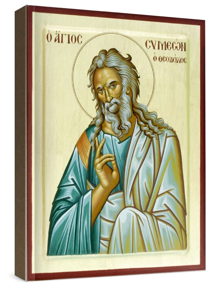 Икона симеон богоприимец. Икона на заказ. Срок изготовления - 5-14 дней. Изображение нанесено на основу из натурального хвойного дерева методом прямой печати (не полиграфия). Деревянная основа иконы подвержена искусственному старению. Лик покрыт специальным лаком, что защищает икону от воздействий окружающей среды и обеспечивает хранение иконы в первозданном виде в течение нескольких десятилетий. Цена зависит от размера иконы (высота может незначительно отличаться от указанной величины в связи с точным соблюдением пропорций оригинала): 10x13*- 1500 руб. 30x40 - 5000 руб. 60x80 - 15000 руб. 15x18 - 2250 руб. 40x60 - 8000 руб. 80x120 - 20000 руб. 20x25 - 3000 руб. * - изготовление иконы 10х13 см возможно только при заказе от 3 шт.