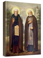 Икона сергий радонежский и серафим саровский. Икона на заказ. Срок изготовления - 5-14 дней. Изображение нанесено на основу из натурального хвойного дерева методом прямой печати (не полиграфия). Деревянная основа иконы подвержена искусственному старению. Лик покрыт специальным лаком, что защищает икону от воздействий окружающей среды и обеспечивает хранение иконы в первозданном виде в течение нескольких десятилетий. Цена зависит от размера иконы (высота может незначительно отличаться от указанной величины в связи с точным соблюдением пропорций оригинала): 10x13*- 1500 руб. 30x40 - 5000 руб. 60x80 - 15000 руб. 15x18 - 2250 руб. 40x60 - 8000 руб. 80x120 - 20000 руб. 20x25 - 3000 руб. * - изготовление иконы 10х13 см возможно только при заказе от 3 шт.