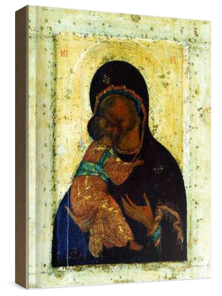 Владимирская икона бм (копия иконы а. рублева). Изображение нанесено на основу из натурального хвойного дерева методом прямой печати. При работе соблюдены размерные пропорции и цветовая гамма оригинальной старинной иконы. Деревянная основа подвержена искусственному старению методом браширования, что делает икону более ценной и максимально похожей на многовековую семейную реликвию. Цена зависит от размера иконы (высота может незначительно отличаться от указанной величины в связи с точным соблюдением пропорций оригинала): 10x13 - 1500 руб. 30x40 - 5000 руб. 60x80 - 15000 руб. 15x18 - 2250 руб. 40x60 - 8000 руб. 80x120 - 20000 руб. 20x25 - 3000 руб.