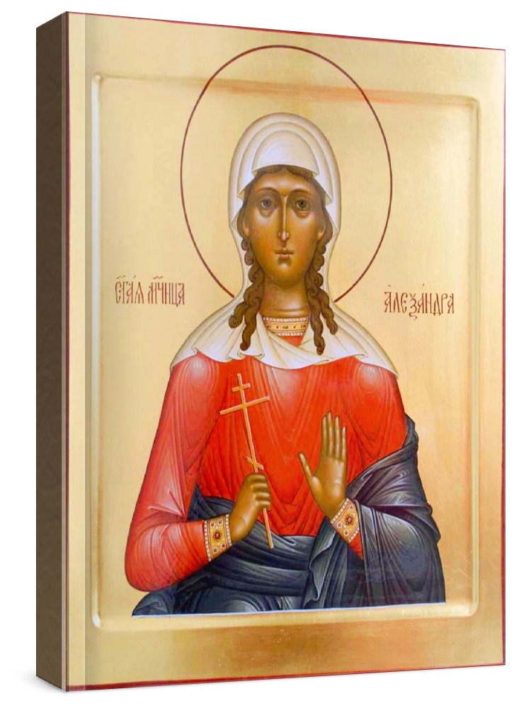 Александра коринфская (икона на дереве). Икона на заказ. Срок изготовления - 1-2 недели. Изображение нанесено на основу из натурального хвойного дерева методом прямой печати (не полиграфия). Деревянная основа иконы подвержена искусственному старению. Лик покрыт специальным лаком, что защищает икону от воздействий окружающей среды и обеспечивает хранение иконы в первозданном виде в течение нескольких десятилетий. Цена зависит от размера иконы (высота может незначительно отличаться от указанной величины в связи с точным соблюдением пропорций оригинала): 10x13*- 1500 руб. 30x40 - 5000 руб. 60x80 - 15000 руб. 15x18 - 2250 руб. 40x60 - 8000 руб. 80x120 - 20000 руб. 20x25 - 3000 руб. * - изготовление иконы 10х13 см возможно только при заказе от 3 шт.