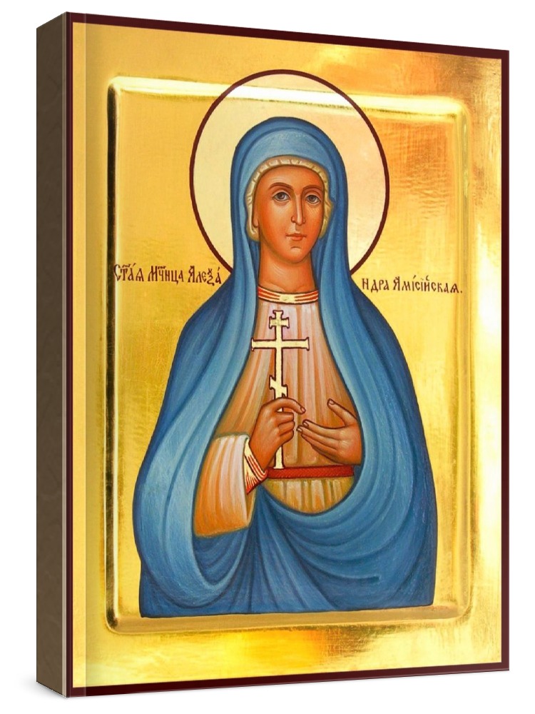 Александра понтийская (икона на дереве). Икона на заказ. Срок изготовления - 1-2 недели. Изображение нанесено на основу из натурального хвойного дерева методом прямой печати (не полиграфия). Деревянная основа иконы подвержена искусственному старению. Лик покрыт специальным лаком, что защищает икону от воздействий окружающей среды и обеспечивает хранение иконы в первозданном виде в течение нескольких десятилетий. Цена зависит от размера иконы (высота может незначительно отличаться от указанной величины в связи с точным соблюдением пропорций оригинала): 10x13*- 1500 руб. 30x40 - 5000 руб. 60x80 - 15000 руб. 15x18 - 2250 руб. 40x60 - 8000 руб. 80x120 - 20000 руб. 20x25 - 3000 руб. * - изготовление иконы 10х13 см возможно только при заказе от 3 шт.