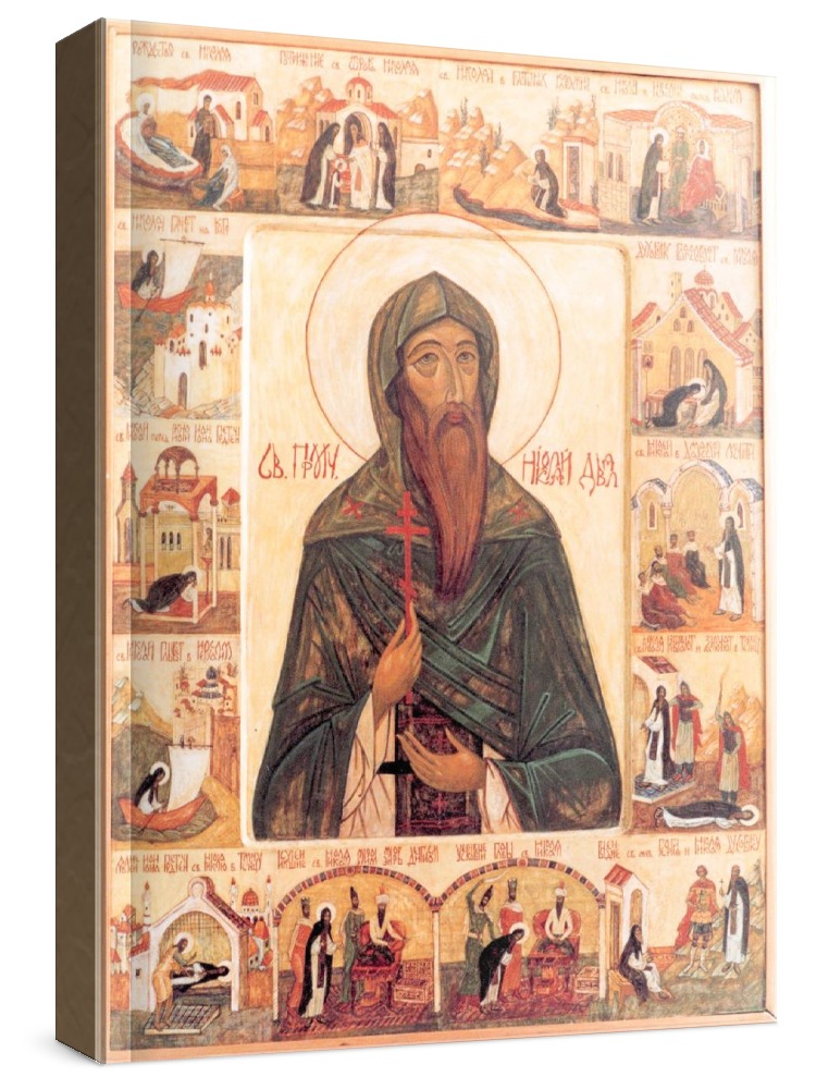 Николай двал, туальский (икона на дереве). Икона на заказ. Срок изготовления - 5-14 дней. Изображение нанесено на основу из натурального хвойного дерева методом прямой печати (не полиграфия). Деревянная основа иконы подвержена искусственному старению. Лик покрыт специальным лаком, что защищает икону от воздействий окружающей среды и обеспечивает хранение иконы в первозданном виде в течение нескольких десятилетий. Цена зависит от размера иконы (высота может незначительно отличаться от указанной величины в связи с точным соблюдением пропорций оригинала): 10x13*- 1500 руб. 30x40 - 5000 руб. 60x80 - 15000 руб. 15x18 - 2250 руб. 40x60 - 8000 руб. 80x120 - 20000 руб. 20x25 - 3000 руб. * - изготовление иконы 10х13 см возможно только при заказе от 3 шт.