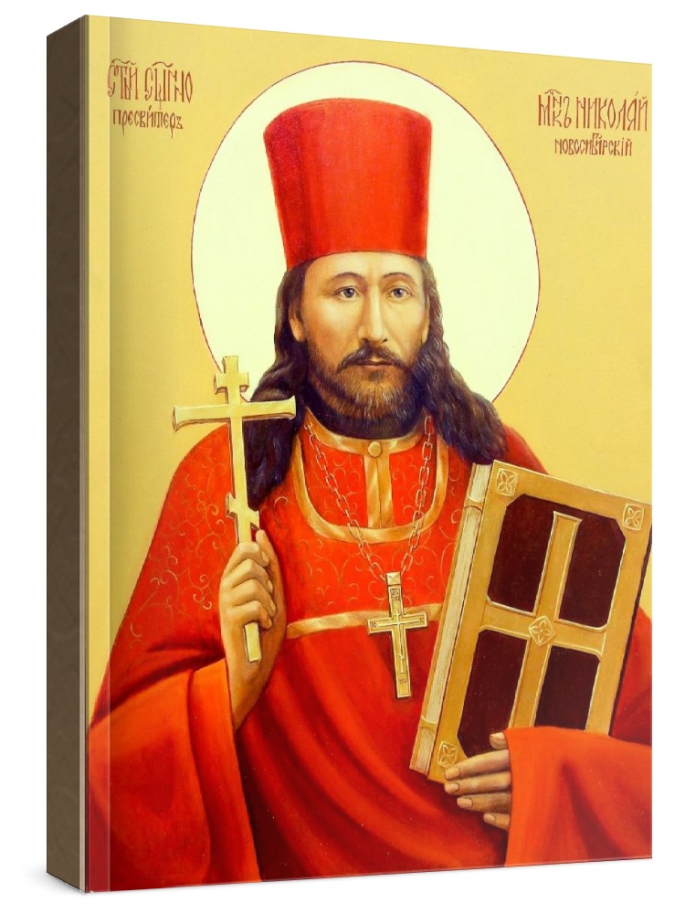 Икона николай новосибирский (ермолов). Икона на заказ. Срок изготовления - 5-14 дней. Изображение нанесено на основу из натурального хвойного дерева методом прямой печати (не полиграфия). Деревянная основа иконы подвержена искусственному старению. Лик покрыт специальным лаком, что защищает икону от воздействий окружающей среды и обеспечивает хранение иконы в первозданном виде в течение нескольких десятилетий. Цена зависит от размера иконы (высота может незначительно отличаться от указанной величины в связи с точным соблюдением пропорций оригинала): 10x13*- 1500 руб. 30x40 - 5000 руб. 60x80 - 15000 руб. 15x18 - 2250 руб. 40x60 - 8000 руб. 80x120 - 20000 руб. 20x25 - 3000 руб. * - изготовление иконы 10х13 см возможно только при заказе от 3 шт.