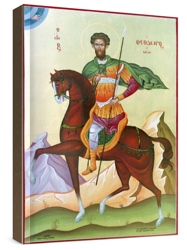 Феодор тирон (икона на дереве). Икона на заказ. Срок изготовления - 5-14 дней. Изображение нанесено на основу из натурального хвойного дерева методом прямой печати (не полиграфия). Деревянная основа иконы подвержена искусственному старению. Лик покрыт специальным лаком, что защищает икону от воздействий окружающей среды и обеспечивает хранение иконы в первозданном виде в течение нескольких десятилетий. Цена зависит от размера иконы (высота может незначительно отличаться от указанной величины в связи с точным соблюдением пропорций образца-оригинала): 10x13 - 1500 руб. 30x40 - 5000 руб. 60x80 - 15000 руб. 15x18 - 2250 руб. 40x60 - 8000 руб. 80x120 - 20000 руб. 20x25 - 3000 руб.
