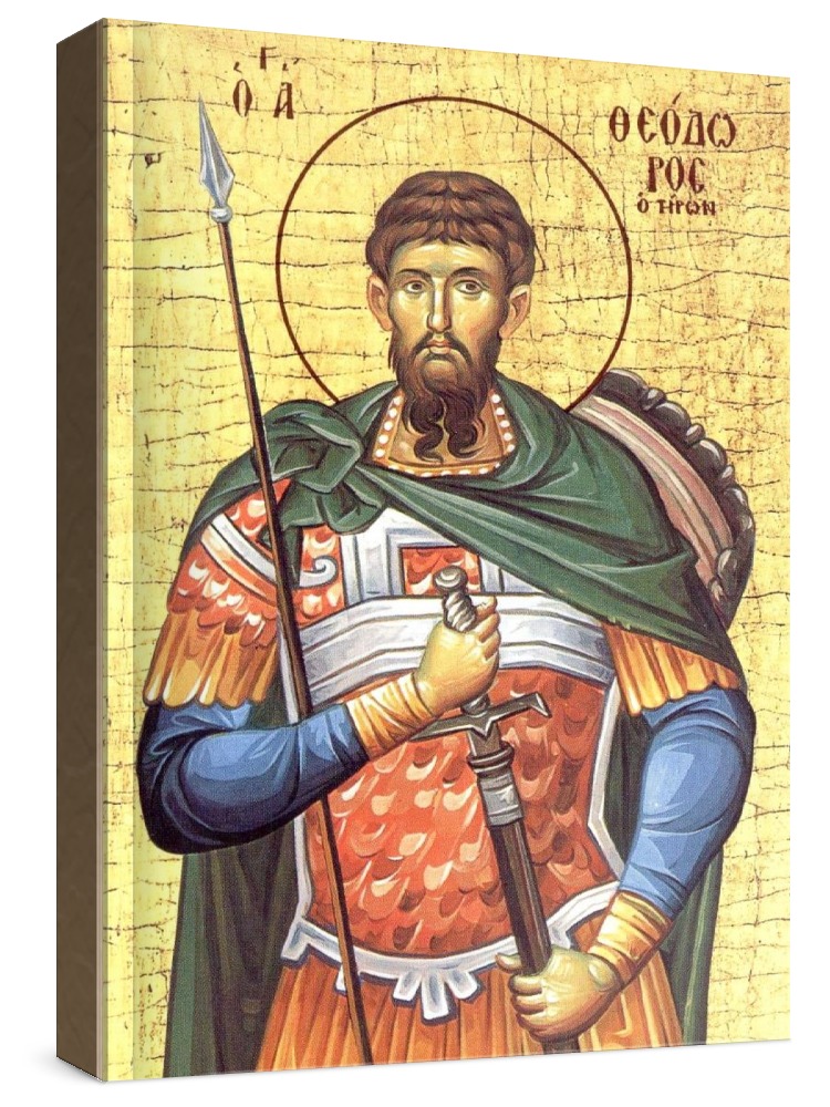 Феодор тирон (икона на дереве). Икона на заказ. Срок изготовления - 5-14 дней. Изображение нанесено на основу из натурального хвойного дерева методом прямой печати (не полиграфия). Деревянная основа иконы подвержена искусственному старению. Лик покрыт специальным лаком, что защищает икону от воздействий окружающей среды и обеспечивает хранение иконы в первозданном виде в течение нескольких десятилетий. Цена зависит от размера иконы (высота может незначительно отличаться от указанной величины в связи с точным соблюдением пропорций образца-оригинала): 10x13 - 1500 руб. 30x40 - 5000 руб. 60x80 - 15000 руб. 15x18 - 2250 руб. 40x60 - 8000 руб. 80x120 - 20000 руб. 20x25 - 3000 руб.