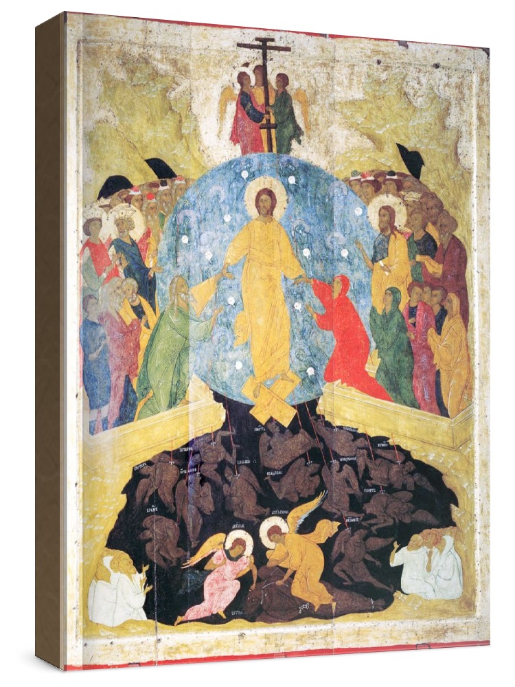 Икона воскресение христово (копия иконы 16 века). Икона на заказ. Срок изготовления - 5-14 дней. Изображение нанесено на основу из натурального хвойного дерева методом прямой печати (не полиграфия). Деревянная основа иконы подвержена искусственному старению. Лик покрыт специальным лаком, что защищает икону от воздействий окружающей среды и обеспечивает хранение иконы в первозданном виде в течение нескольких десятилетий. Цена зависит от размера иконы (высота может незначительно отличаться от указанной величины в связи с точным соблюдением пропорций оригинала): 10x13 - 1500 руб. 30x40 - 5000 руб. 60x80 - 15000 руб. 15x18 - 2250 руб. 40x60 - 8000 руб. 80x120 - 20000 руб. 20x25 - 3000 руб.