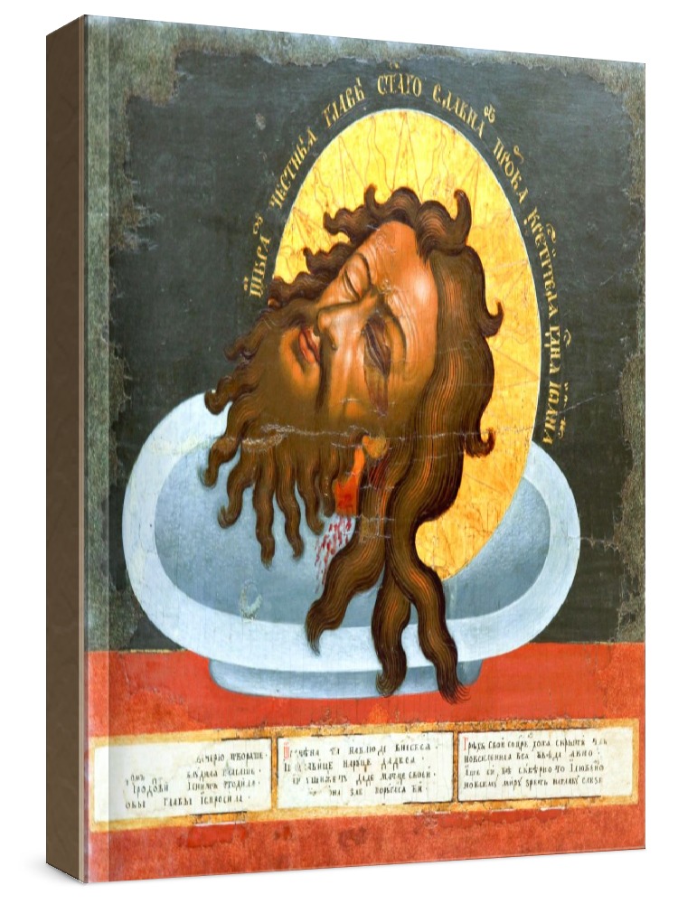 Икона глава иоанна предтечи (копия старинной иконы). Икона на заказ. Срок изготовления - 5-14 дней. Изображение нанесено на основу из натурального хвойного дерева методом прямой печати (не полиграфия). Деревянная основа иконы подвержена искусственному старению. Лик покрыт специальным лаком, что защищает икону от воздействий окружающей среды и обеспечивает хранение иконы в первозданном виде в течение нескольких десятилетий. Цена зависит от размера иконы (высота может незначительно отличаться от указанной величины в связи с точным соблюдением пропорций оригинала): 10x13 - 1500 руб. 30x40 - 5000 руб. 60x80 - 15000 руб. 15x18 - 2250 руб. 40x60 - 8000 руб. 80x120 - 20000 руб. 20x25 - 3000 руб.