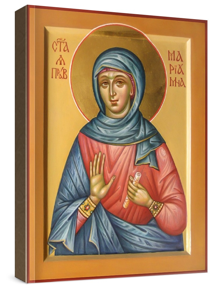 Мариамна праведная (икона на дереве). Икона на заказ. Срок изготовления - 5-14 дней. Изображение нанесено на основу из натурального хвойного дерева методом прямой печати (не полиграфия). Деревянная основа иконы подвержена искусственному старению. Лик покрыт специальным лаком, что защищает икону от воздействий окружающей среды и обеспечивает хранение иконы в первозданном виде в течение нескольких десятилетий. Цена зависит от размера иконы (высота может незначительно отличаться от указанной величины в связи с точным соблюдением пропорций образца-оригинала): 10x13 - 1500 руб. 30x40 - 5000 руб. 60x80 - 15000 руб. 15x18 - 2250 руб. 40x60 - 8000 руб. 80x120 - 20000 руб. 20x25 - 3000 руб.