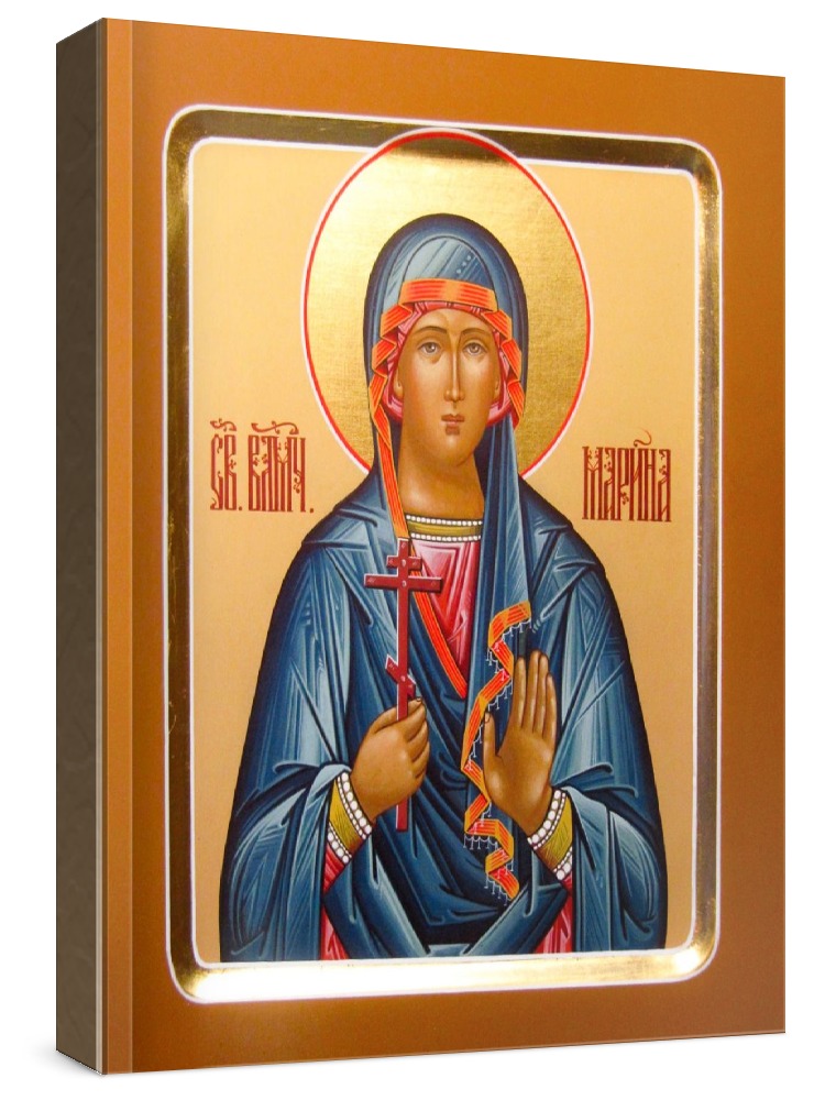 Марина антиохийская (икона на дереве). Икона на заказ. Срок изготовления - 5-14 дней. Изображение нанесено на основу из натурального хвойного дерева методом прямой печати (не полиграфия). Деревянная основа иконы подвержена искусственному старению. Лик покрыт специальным лаком, что защищает икону от воздействий окружающей среды и обеспечивает хранение иконы в первозданном виде в течение нескольких десятилетий. Цена зависит от размера иконы (высота может незначительно отличаться от указанной величины в связи с точным соблюдением пропорций образца-оригинала): 10x13 - 1500 руб. 30x40 - 5000 руб. 60x80 - 15000 руб. 15x18 - 2250 руб. 40x60 - 8000 руб. 80x120 - 20000 руб. 20x25 - 3000 руб.