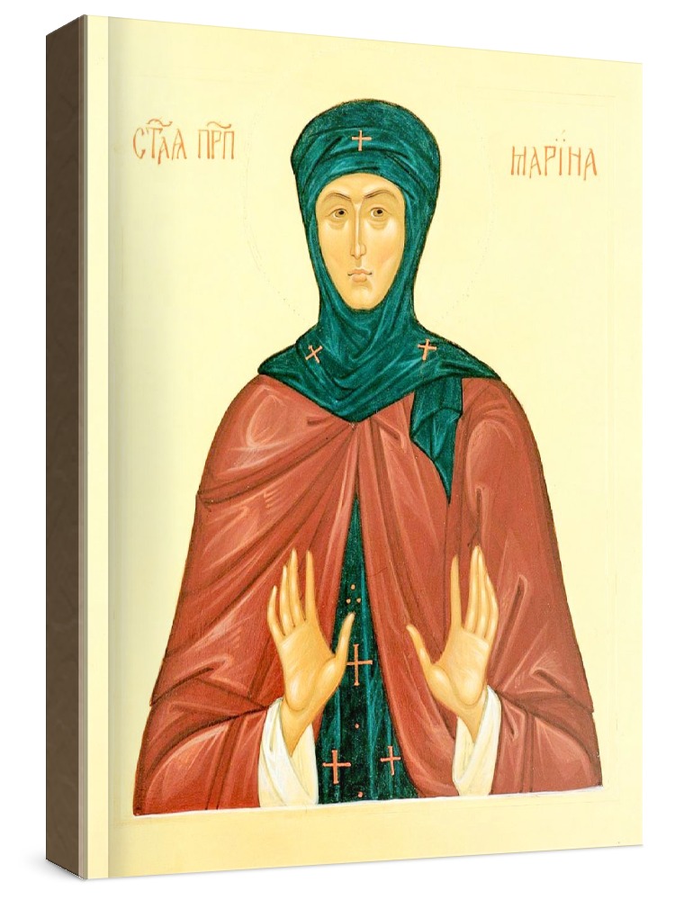 Икона марина берийская (македонская). Икона на заказ. Срок изготовления - 5-14 дней. Изображение нанесено на основу из натурального хвойного дерева методом прямой печати (не полиграфия). Деревянная основа иконы подвержена искусственному старению. Лик покрыт специальным лаком, что защищает икону от воздействий окружающей среды и обеспечивает хранение иконы в первозданном виде в течение нескольких десятилетий. Цена зависит от размера иконы (высота может незначительно отличаться от указанной величины в связи с точным соблюдением пропорций образца-оригинала): 10x13 - 1500 руб. 30x40 - 5000 руб. 60x80 - 15000 руб. 15x18 - 2250 руб. 40x60 - 8000 руб. 80x120 - 20000 руб. 20x25 - 3000 руб.