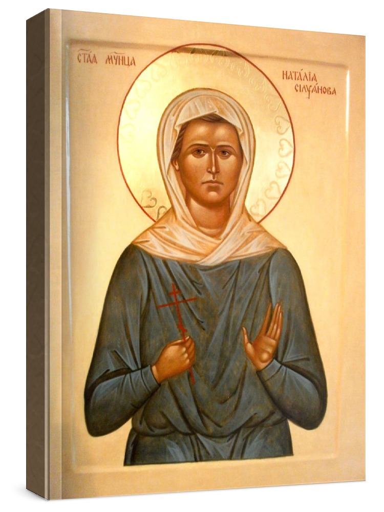Наталия силуянова (икона на дереве). Икона на заказ. Срок изготовления - 5-14 дней. Изображение нанесено на основу из натурального хвойного дерева методом прямой печати (не полиграфия). Деревянная основа иконы подвержена искусственному старению. Лик покрыт специальным лаком, что защищает икону от воздействий окружающей среды и обеспечивает хранение иконы в первозданном виде в течение нескольких десятилетий. Цена зависит от размера иконы (высота может незначительно отличаться от указанной величины в связи с точным соблюдением пропорций образца-оригинала): 10x13 - 1500 руб. 30x40 - 5000 руб. 60x80 - 15000 руб. 15x18 - 2250 руб. 40x60 - 8000 руб. 80x120 - 20000 руб. 20x25 - 3000 руб.