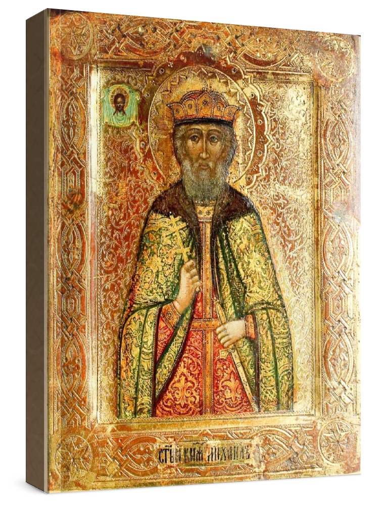 Икона михаил черниговский (копия старинной иконы). Икона на заказ. Срок изготовления - 5-14 дней. Изображение нанесено на основу из натурального хвойного дерева методом прямой печати (не полиграфия). Деревянная основа иконы подвержена искусственному старению. Лик покрыт специальным лаком, что защищает икону от воздействий окружающей среды и обеспечивает хранение иконы в первозданном виде в течение нескольких десятилетий. Цена зависит от размера иконы (высота может незначительно отличаться от указанной величины в связи с точным соблюдением пропорций оригинала): 10x13 - 1500 руб. 30x40 - 5000 руб. 60x80 - 15000 руб. 15x18 - 2250 руб. 40x60 - 8000 руб. 80x120 - 20000 руб. 20x25 - 3000 руб.