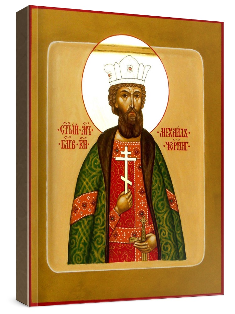 Михаил черниговский (икона на дереве). Икона на заказ. Срок изготовления - 5-14 дней. Изображение нанесено на основу из натурального хвойного дерева методом прямой печати (не полиграфия). Деревянная основа иконы подвержена искусственному старению. Лик покрыт специальным лаком, что защищает икону от воздействий окружающей среды и обеспечивает хранение иконы в первозданном виде в течение нескольких десятилетий. Цена зависит от размера иконы (высота может незначительно отличаться от указанной величины в связи с точным соблюдением пропорций образца-оригинала): 10x13 - 1500 руб. 30x40 - 5000 руб. 60x80 - 15000 руб. 15x18 - 2250 руб. 40x60 - 8000 руб. 80x120 - 20000 руб. 20x25 - 3000 руб.