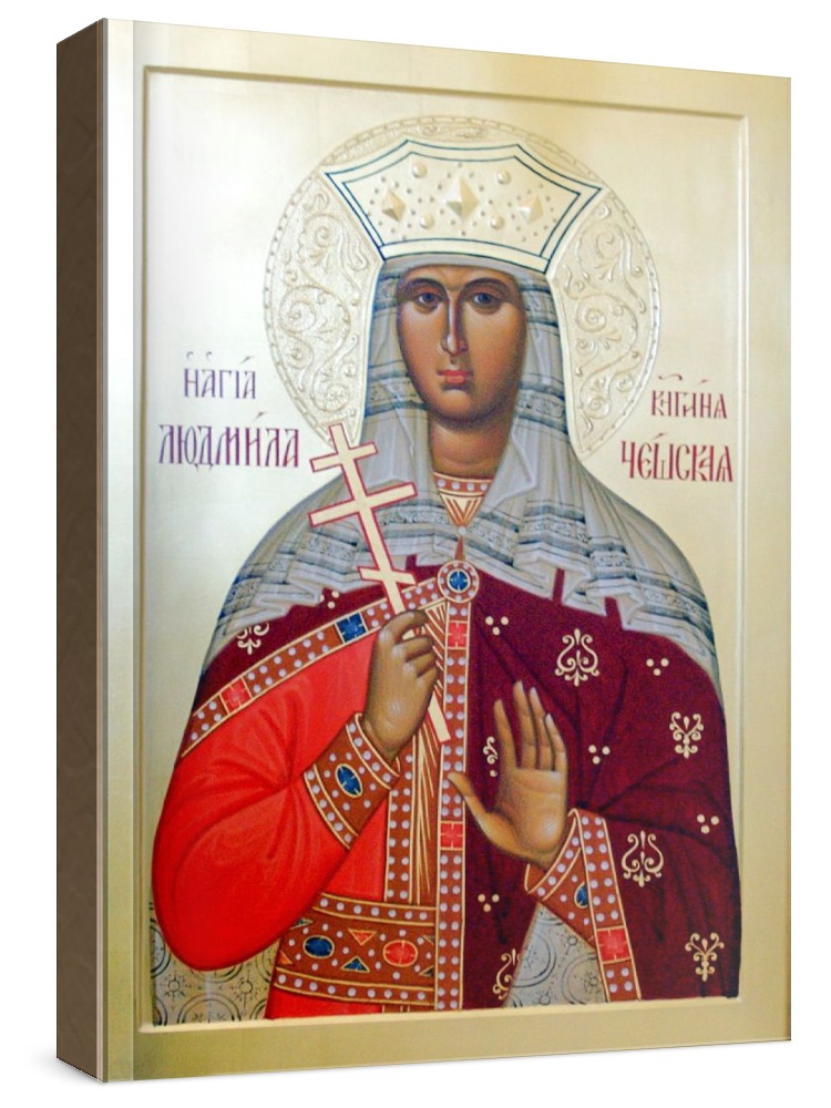 Людмила чешская (икона на дереве). Икона на заказ. Срок изготовления - 5-14 дней. Изображение нанесено на основу из натурального хвойного дерева методом прямой печати (не полиграфия). Деревянная основа иконы подвержена искусственному старению. Лик покрыт специальным лаком, что защищает икону от воздействий окружающей среды и обеспечивает хранение иконы в первозданном виде в течение нескольких десятилетий. Цена зависит от размера иконы (высота может незначительно отличаться от указанной величины в связи с точным соблюдением пропорций образца-оригинала): 10x13 - 1500 руб. 30x40 - 5000 руб. 60x80 - 15000 руб. 15x18 - 2250 руб. 40x60 - 8000 руб. 80x120 - 20000 руб. 20x25 - 3000 руб.
