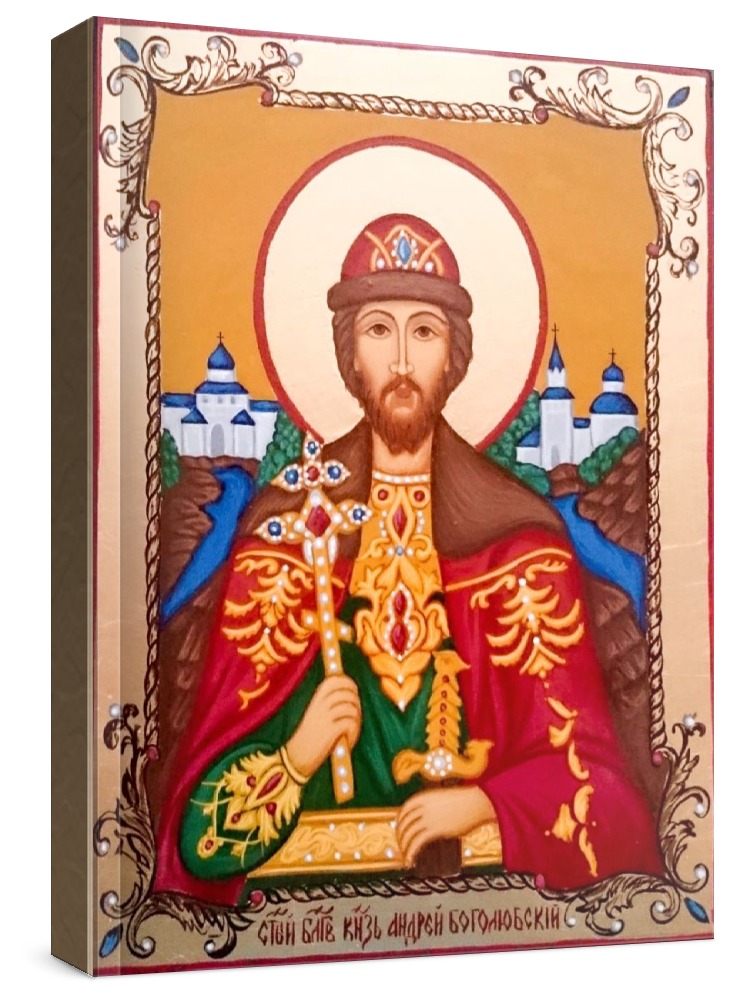 Андрей боголюбский (икона на дереве). Икона на заказ. Срок изготовления - 5-14 дней. Изображение нанесено на основу из натурального хвойного дерева методом прямой печати (не полиграфия). Деревянная основа иконы подвержена искусственному старению. Лик покрыт специальным лаком, что защищает икону от воздействий окружающей среды и обеспечивает хранение иконы в первозданном виде в течение нескольких десятилетий. Цена зависит от размера иконы (высота может незначительно отличаться от указанной величины в связи с точным соблюдением пропорций образца-оригинала): 10x13 - 1500 руб. 30x40 - 5000 руб. 60x80 - 15000 руб. 15x18 - 2250 руб. 40x60 - 8000 руб. 80x120 - 20000 руб. 20x25 - 3000 руб.