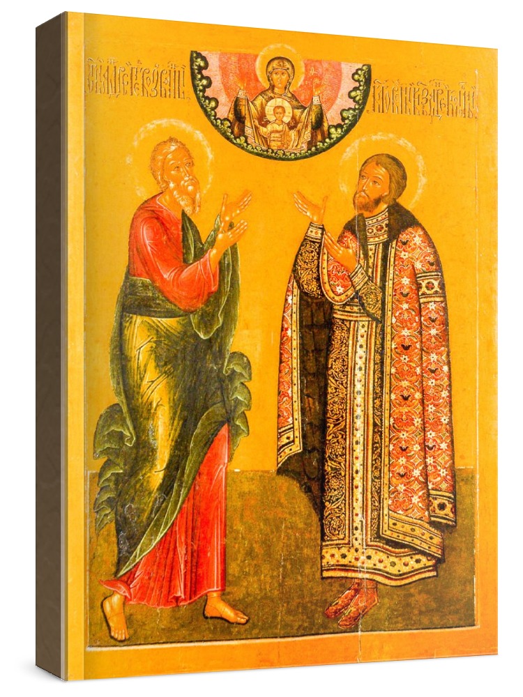 Андрей первозванный и андрей боголюбский (икона на дереве). Икона на заказ. Срок изготовления - 5-14 дней. Изображение нанесено на основу из натурального хвойного дерева методом прямой печати (не полиграфия). Деревянная основа иконы подвержена искусственному старению. Лик покрыт специальным лаком, что защищает икону от воздействий окружающей среды и обеспечивает хранение иконы в первозданном виде в течение нескольких десятилетий. Цена зависит от размера иконы (высота может незначительно отличаться от указанной величины в связи с точным соблюдением пропорций образца-оригинала): 10x13 - 1500 руб. 30x40 - 5000 руб. 60x80 - 15000 руб. 15x18 - 2250 руб. 40x60 - 8000 руб. 80x120 - 20000 руб. 20x25 - 3000 руб.