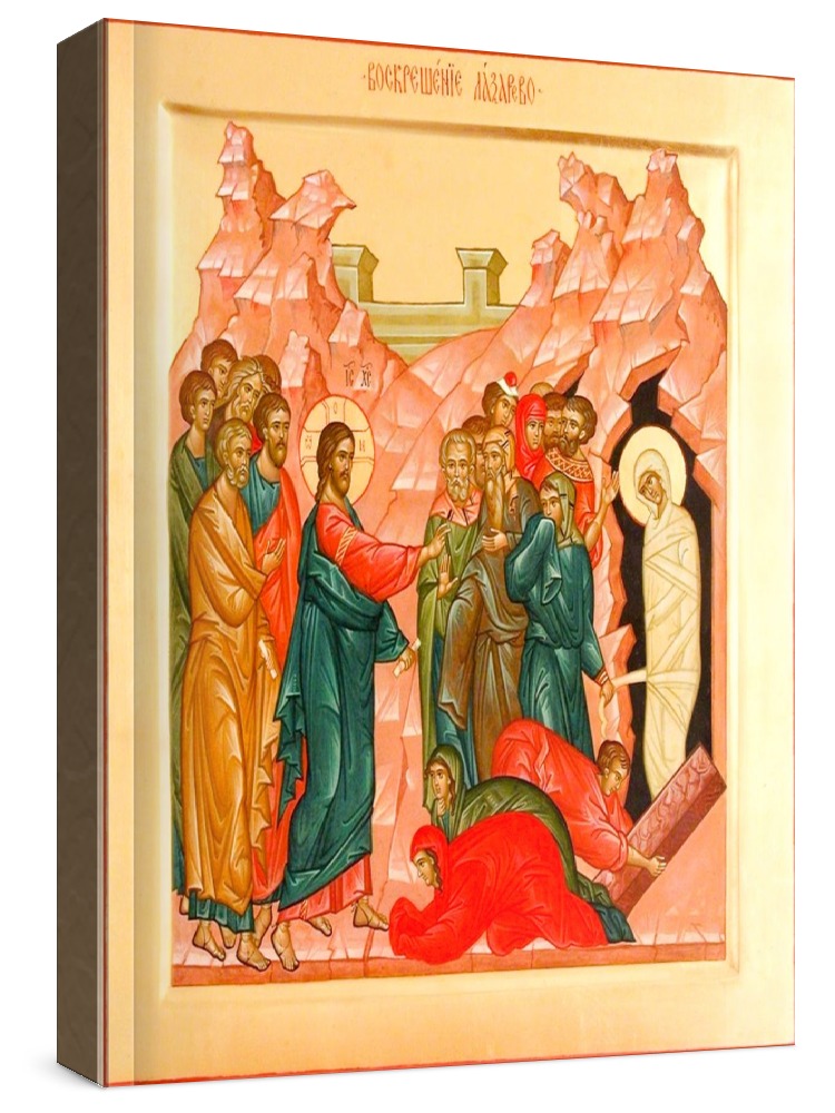 Воскрешение лазаря (икона на дереве). Икона на заказ. Срок изготовления - 5-14 дней. Изображение нанесено на основу из натурального хвойного дерева методом прямой печати (не полиграфия). Деревянная основа иконы подвержена искусственному старению. Лик покрыт специальным лаком, что защищает икону от воздействий окружающей среды и обеспечивает хранение иконы в первозданном виде в течение нескольких десятилетий. Цена зависит от размера иконы (высота может незначительно отличаться от указанной величины в связи с точным соблюдением пропорций образца-оригинала): 10x13 - 1500 руб. 30x40 - 5000 руб. 60x80 - 15000 руб. 15x18 - 2250 руб. 40x60 - 8000 руб. 80x120 - 20000 руб. 20x25 - 3000 руб.