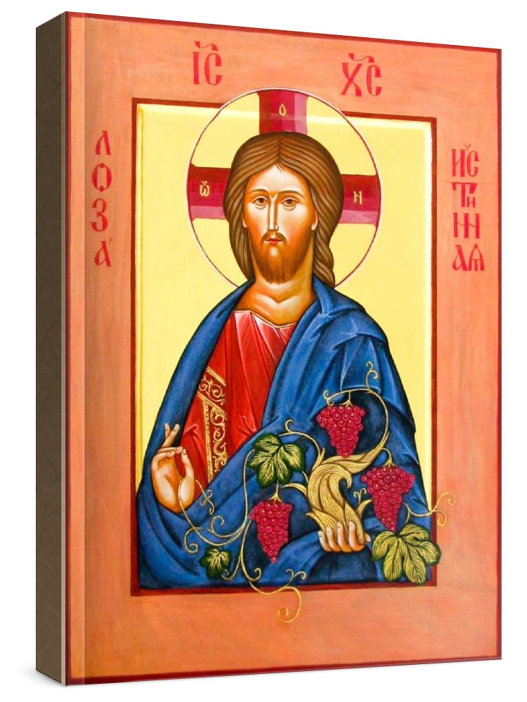 Икона христос лоза истинная (виноградная лоза). Икона на заказ. Срок изготовления - 5-14 дней. Изображение нанесено на основу из натурального хвойного дерева методом прямой печати (не полиграфия). Деревянная основа иконы подвержена искусственному старению. Лик покрыт специальным лаком, что защищает икону от воздействий окружающей среды и обеспечивает хранение иконы в первозданном виде в течение нескольких десятилетий. Цена зависит от размера иконы (высота может незначительно отличаться от указанной величины в связи с точным соблюдением пропорций образца-оригинала): 10x13 - 1500 руб. 30x40 - 5000 руб. 60x80 - 15000 руб. 15x18 - 2250 руб. 40x60 - 8000 руб. 80x120 - 20000 руб. 20x25 - 3000 руб.