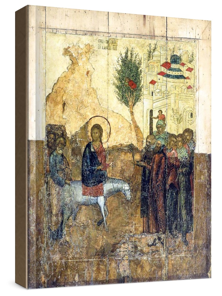 Икона вход господень в иерусалим (копия старинной иконы). Икона на заказ. Срок изготовления - 5-14 дней. Изображение нанесено на основу из натурального хвойного дерева методом прямой печати (не полиграфия). При работе соблюдены размерные пропорции и цветовая гамма оригинальной старинной иконы. Деревянная основа подвержена искусственному старению методом браширования, что делает икону более ценной и максимально похожей на многовековую семейную реликвию. Лик покрыт специальным лаком, что защищает икону от воздействий окружающей среды и обеспечивает хранение иконы в первозданном виде в течение нескольких десятилетий. Цена зависит от размера иконы (высота может незначительно отличаться от указанной величины в связи с точным соблюдением пропорций оригинала): 10x13 - 1500 руб. 30x40 - 5000 руб. 60x80 - 15000 руб. 15x18 - 2250 руб. 40x60 - 8000 руб. 80x120 - 20000 руб. 20x25 - 3000 руб.