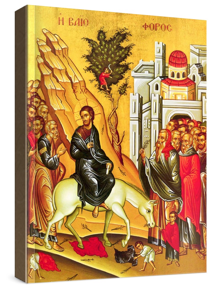Вход господень в иерусалим (икона на дереве). Икона на заказ. Срок изготовления - 5-14 дней. Изображение нанесено на основу из натурального хвойного дерева методом прямой печати (не полиграфия). Деревянная основа иконы подвержена искусственному старению. Лик покрыт специальным лаком, что защищает икону от воздействий окружающей среды и обеспечивает хранение иконы в первозданном виде в течение нескольких десятилетий. Цена зависит от размера иконы (высота может незначительно отличаться от указанной величины в связи с точным соблюдением пропорций образца-оригинала): 10x13 - 1500 руб. 30x40 - 5000 руб. 60x80 - 15000 руб. 15x18 - 2250 руб. 40x60 - 8000 руб. 80x120 - 20000 руб. 20x25 - 3000 руб.