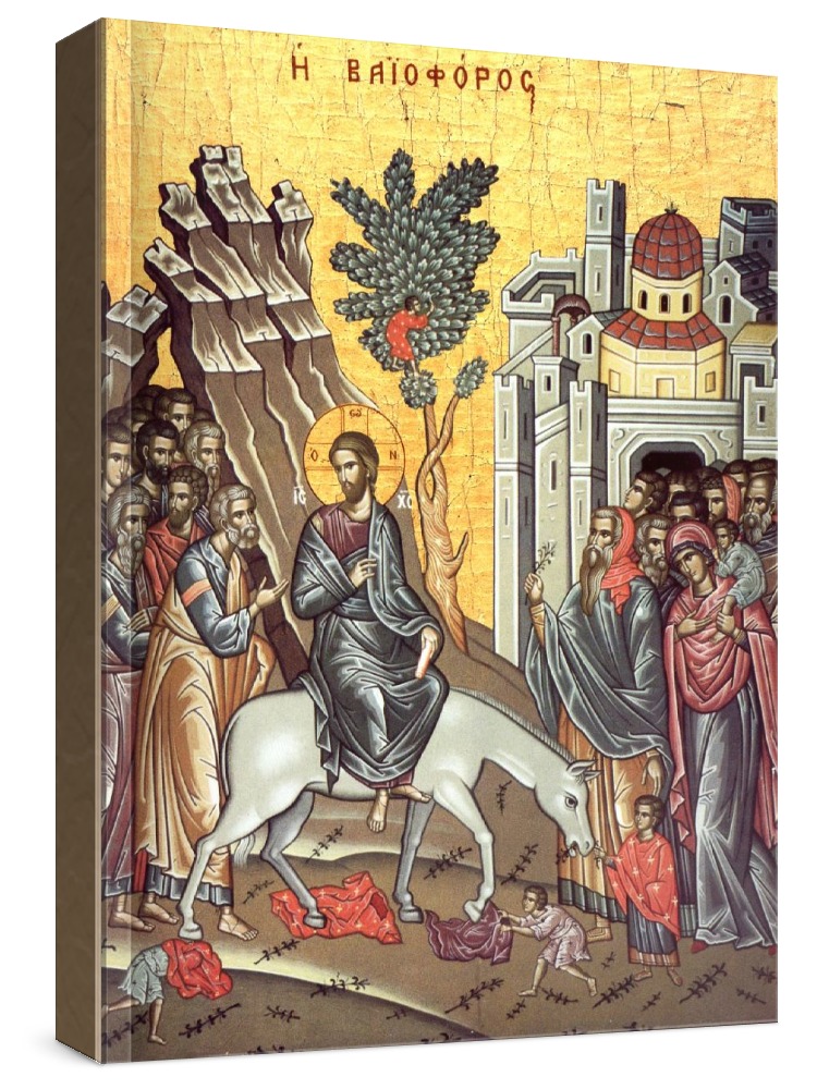 Вход господень в иерусалим (икона на дереве). Икона на заказ. Срок изготовления - 5-14 дней. Изображение нанесено на основу из натурального хвойного дерева методом прямой печати (не полиграфия). Деревянная основа иконы подвержена искусственному старению. Лик покрыт специальным лаком, что защищает икону от воздействий окружающей среды и обеспечивает хранение иконы в первозданном виде в течение нескольких десятилетий. Цена зависит от размера иконы (высота может незначительно отличаться от указанной величины в связи с точным соблюдением пропорций образца-оригинала): 10x13 - 1500 руб. 30x40 - 5000 руб. 60x80 - 15000 руб. 15x18 - 2250 руб. 40x60 - 8000 руб. 80x120 - 20000 руб. 20x25 - 3000 руб.