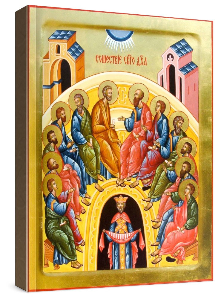 Сошествие святого духа на апостолов (икона на дереве). Икона на заказ. Срок изготовления - 5-14 дней. Изображение нанесено на основу из натурального хвойного дерева методом прямой печати (не полиграфия). Деревянная основа иконы подвержена искусственному старению. Лик покрыт специальным лаком, что защищает икону от воздействий окружающей среды и обеспечивает хранение иконы в первозданном виде в течение нескольких десятилетий. Цена зависит от размера иконы (высота может незначительно отличаться от указанной величины в связи с точным соблюдением пропорций образца-оригинала): 10x13 - 1500 руб. 30x40 - 5000 руб. 60x80 - 15000 руб. 15x18 - 2250 руб. 40x60 - 8000 руб. 80x120 - 20000 руб. 20x25 - 3000 руб.