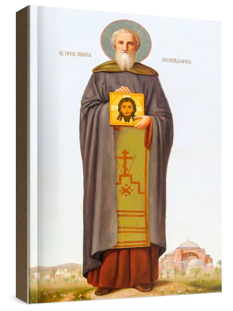 Икона никита исповедник (константинопольский). Икона на заказ. Срок изготовления - 5-14 дней. Изображение нанесено на основу из натурального хвойного дерева методом прямой печати (не полиграфия). Деревянная основа иконы подвержена искусственному старению. Лик покрыт специальным лаком, что защищает икону от воздействий окружающей среды и обеспечивает хранение иконы в первозданном виде в течение нескольких десятилетий. Цена зависит от размера иконы (высота может незначительно отличаться от указанной величины в связи с точным соблюдением пропорций оригинала): 10x13 - 1500 руб. 30x40 - 5000 руб. 60x80 - 15000 руб. 15x18 - 2250 руб. 40x60 - 8000 руб. 80x120 - 20000 руб. 20x25 - 3000 руб.