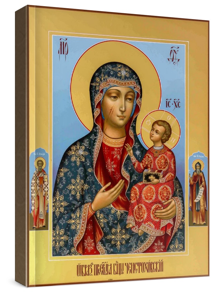 Ченстоховская икона бм (икона на дереве). Икона на заказ. Срок изготовления - 5-14 дней. Изображение нанесено на основу из натурального хвойного дерева методом прямой печати (не полиграфия). Деревянная основа иконы подвержена искусственному старению. Лик покрыт специальным лаком, что защищает икону от воздействий окружающей среды и обеспечивает хранение иконы в первозданном виде в течение нескольких десятилетий. Цена зависит от размера иконы (высота может незначительно отличаться от указанной величины в связи с точным соблюдением пропорций образца-оригинала): 10x13 - 1500 руб. 30x40 - 5000 руб. 60x80 - 15000 руб. 15x18 - 2250 руб. 40x60 - 8000 руб. 80x120 - 20000 руб. 20x25 - 3000 руб.