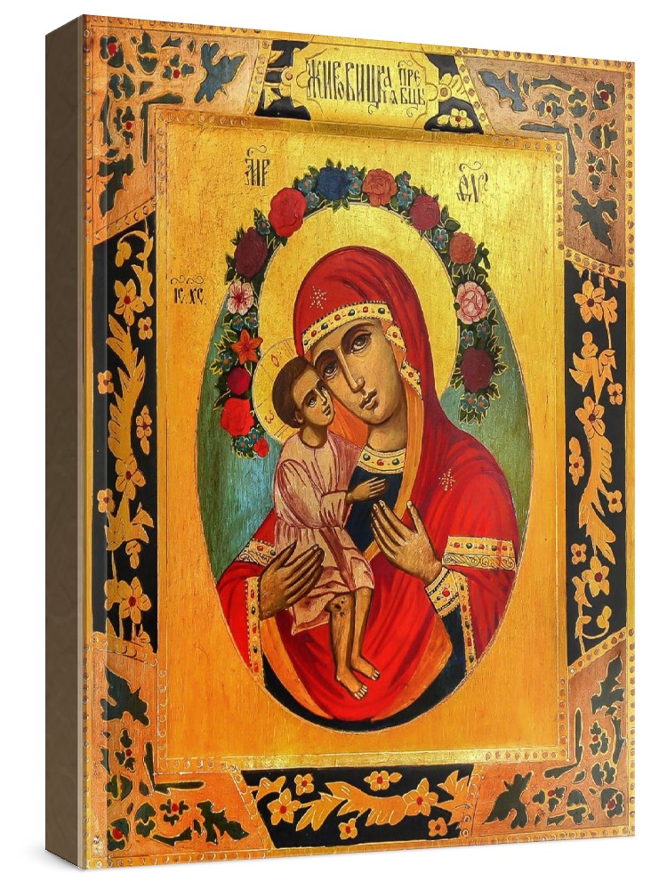 Жировицкая (икона на дереве). Икона на заказ. Срок изготовления - 5-14 дней. Изображение нанесено на основу из натурального хвойного дерева методом прямой печати (не полиграфия). Деревянная основа иконы подвержена искусственному старению. Лик покрыт специальным лаком, что защищает икону от воздействий окружающей среды и обеспечивает хранение иконы в первозданном виде в течение нескольких десятилетий. Цена зависит от размера иконы (высота может незначительно отличаться от указанной величины в связи с точным соблюдением пропорций образца-оригинала): 10x13 - 1500 руб. 30x40 - 5000 руб. 60x80 - 15000 руб. 15x18 - 2250 руб. 40x60 - 8000 руб. 80x120 - 20000 руб. 20x25 - 3000 руб.