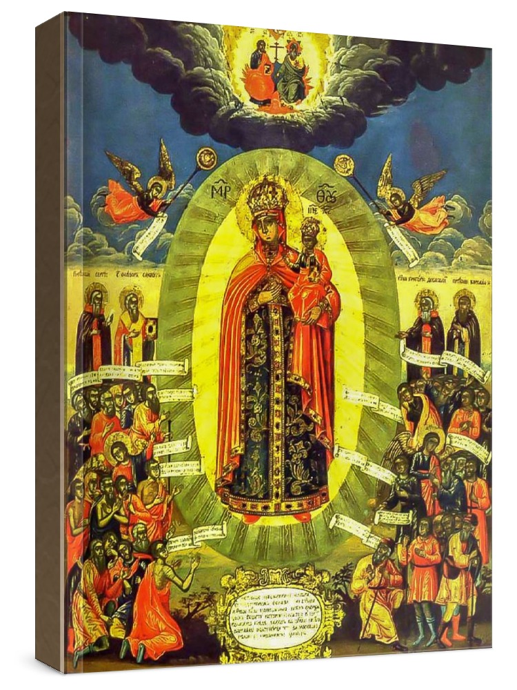 Икона всех скорбящих радость (копия старинной иконы). Икона на заказ. Срок изготовления - 5-14 дней. Изображение нанесено на основу из натурального хвойного дерева методом прямой печати (не полиграфия). При работе соблюдены размерные пропорции и цветовая гамма оригинальной старинной иконы. Деревянная основа иконы подвержена искусственному старению. Лик покрыт специальным лаком, что защищает икону от воздействий окружающей среды и обеспечивает хранение иконы в первозданном виде в течение нескольких десятилетий. Цена зависит от размера иконы (высота может незначительно отличаться от указанной величины в связи с точным соблюдением пропорций оригинала): 10x13 - 1500 руб. 30x40 - 5000 руб. 60x80 - 15000 руб. 15x18 - 2250 руб. 40x60 - 8000 руб. 80x120 - 20000 руб. 20x25 - 3000 руб.