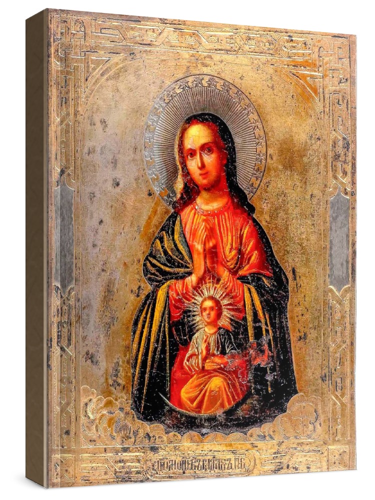 Икона помощница в родах (копия старинной иконы). Икона на заказ. Срок изготовления - 5-14 дней. Изображение нанесено на основу из натурального хвойного дерева методом прямой печати (не полиграфия). Деревянная основа иконы подвержена искусственному старению. Лик покрыт специальным лаком, что защищает икону от воздействий окружающей среды и обеспечивает хранение иконы в первозданном виде в течение нескольких десятилетий. Цена зависит от размера иконы (высота может незначительно отличаться от указанной величины в связи с точным соблюдением пропорций образца-оригинала): 10x13 - 1500 руб. 30x40 - 5000 руб. 60x80 - 15000 руб. 15x18 - 2250 руб. 40x60 - 8000 руб. 80x120 - 20000 руб. 20x25 - 3000 руб.