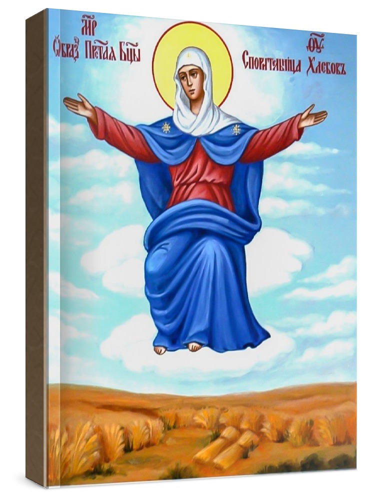 Спорительница хлебов (икона на дереве). Икона на заказ. Срок изготовления - 5-14 дней. Изображение нанесено на основу из натурального хвойного дерева методом прямой печати (не полиграфия). Деревянная основа иконы подвержена искусственному старению. Лик покрыт специальным лаком, что защищает икону от воздействий окружающей среды и обеспечивает хранение иконы в первозданном виде в течение нескольких десятилетий. Цена зависит от размера иконы (высота может незначительно отличаться от указанной величины в связи с точным соблюдением пропорций образца-оригинала): 10x13 - 1500 руб. 30x40 - 5000 руб. 60x80 - 15000 руб. 15x18 - 2250 руб. 40x60 - 8000 руб. 80x120 - 20000 руб. 20x25 - 3000 руб.