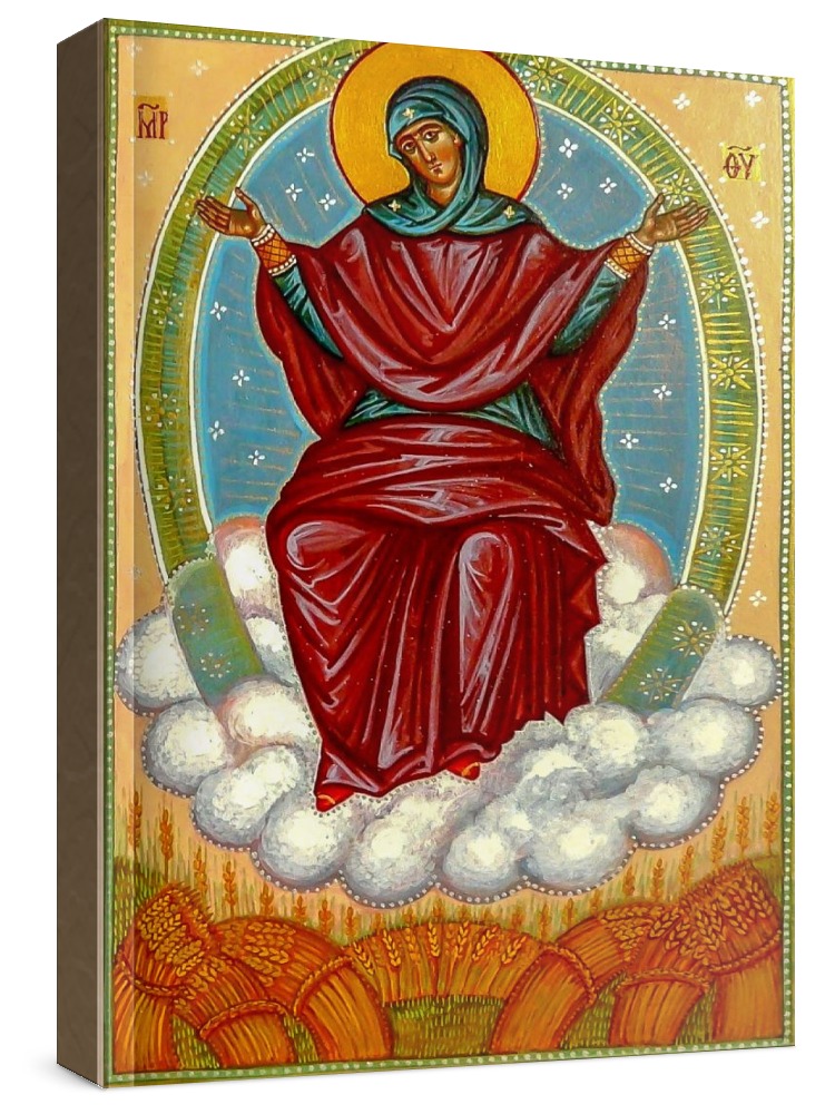 Спорительница хлебов (икона на дереве). Икона на заказ. Срок изготовления - 5-14 дней. Изображение нанесено на основу из натурального хвойного дерева методом прямой печати (не полиграфия). Деревянная основа иконы подвержена искусственному старению. Лик покрыт специальным лаком, что защищает икону от воздействий окружающей среды и обеспечивает хранение иконы в первозданном виде в течение нескольких десятилетий. Цена зависит от размера иконы (высота может незначительно отличаться от указанной величины в связи с точным соблюдением пропорций образца-оригинала): 10x13 - 1500 руб. 30x40 - 5000 руб. 60x80 - 15000 руб. 15x18 - 2250 руб. 40x60 - 8000 руб. 80x120 - 20000 руб. 20x25 - 3000 руб.