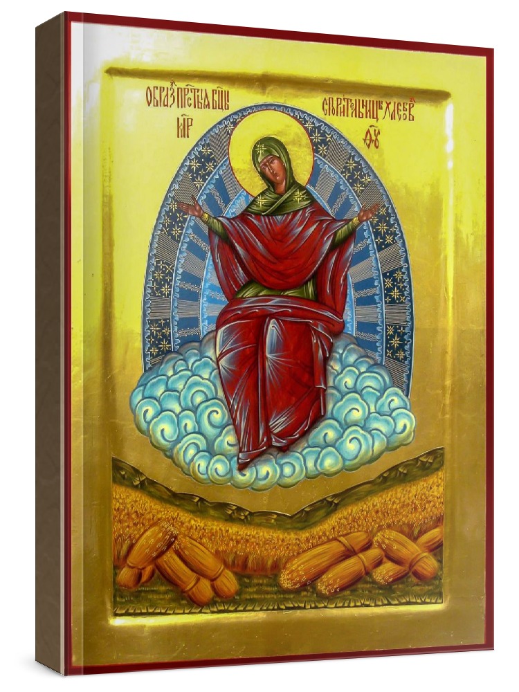 Спорительница хлебов (икона на дереве). Икона на заказ. Срок изготовления - 5-14 дней. Изображение нанесено на основу из натурального хвойного дерева методом прямой печати (не полиграфия). Деревянная основа иконы подвержена искусственному старению. Лик покрыт специальным лаком, что защищает икону от воздействий окружающей среды и обеспечивает хранение иконы в первозданном виде в течение нескольких десятилетий. Цена зависит от размера иконы (высота может незначительно отличаться от указанной величины в связи с точным соблюдением пропорций образца-оригинала): 10x13 - 1500 руб. 30x40 - 5000 руб. 60x80 - 15000 руб. 15x18 - 2250 руб. 40x60 - 8000 руб. 80x120 - 20000 руб. 20x25 - 3000 руб.