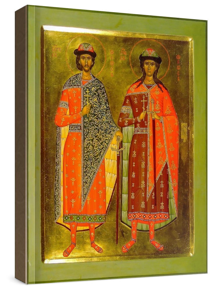 Борис и глеб (икона на дереве). Икона на заказ. Срок изготовления - 5-14 дней. Изображение нанесено на основу из натурального хвойного дерева методом прямой печати (не полиграфия). При работе соблюдены размерные пропорции и цветовая гамма оригинальной старинной иконы. Деревянная основа иконы подвержена искусственному старению. Лик покрыт специальным лаком, что защищает икону от воздействий окружающей среды и обеспечивает хранение иконы в первозданном виде в течение нескольких десятилетий. Цена зависит от размера иконы (высота может незначительно отличаться от указанной величины в связи с точным соблюдением пропорций оригинала): 10x13 - 1500 руб. 30x40 - 5000 руб. 60x80 - 15000 руб. 15x18 - 2250 руб. 40x60 - 8000 руб. 80x120 - 20000 руб. 20x25 - 3000 руб.