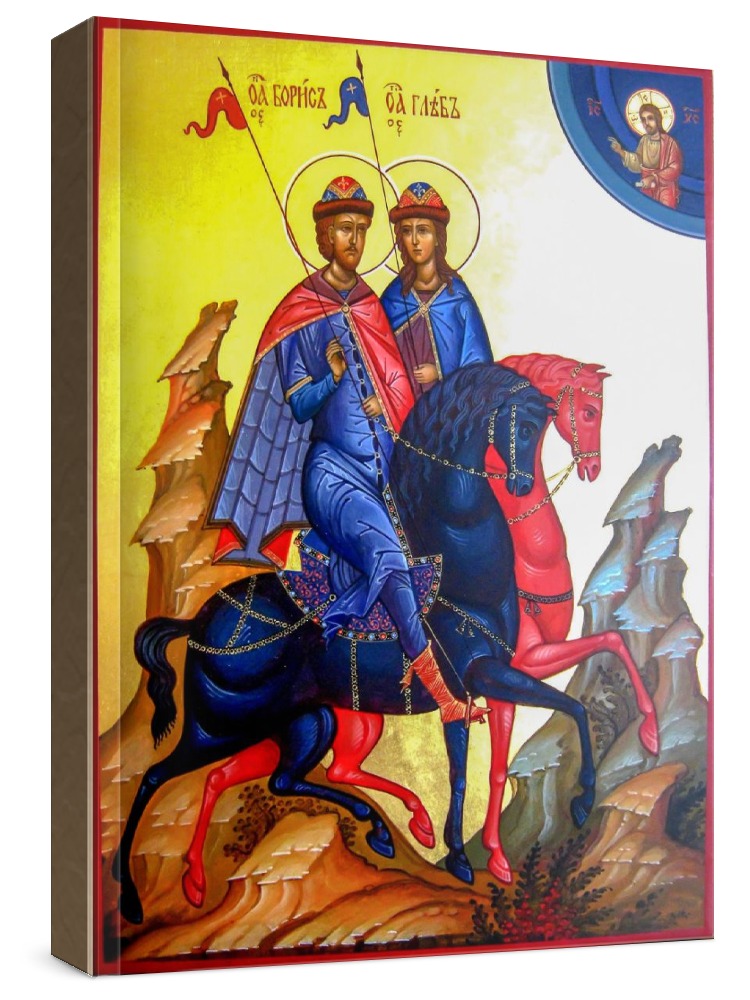 Борис и глеб (икона на дереве). Икона на заказ. Срок изготовления - 5-14 дней. Изображение нанесено на основу из натурального хвойного дерева методом прямой печати (не полиграфия). При работе соблюдены размерные пропорции и цветовая гамма оригинальной старинной иконы. Деревянная основа иконы подвержена искусственному старению. Лик покрыт специальным лаком, что защищает икону от воздействий окружающей среды и обеспечивает хранение иконы в первозданном виде в течение нескольких десятилетий. Цена зависит от размера иконы (высота может незначительно отличаться от указанной величины в связи с точным соблюдением пропорций оригинала): 10x13 - 1500 руб. 30x40 - 5000 руб. 60x80 - 15000 руб. 15x18 - 2250 руб. 40x60 - 8000 руб. 80x120 - 20000 руб. 20x25 - 3000 руб.