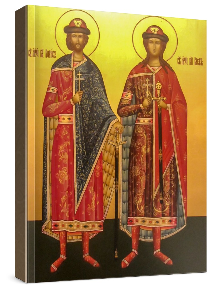 Борис и глеб (икона на дереве). Икона на заказ. Срок изготовления - 5-14 дней. Изображение нанесено на основу из натурального хвойного дерева методом прямой печати (не полиграфия). При работе соблюдены размерные пропорции и цветовая гамма оригинальной старинной иконы. Деревянная основа иконы подвержена искусственному старению. Лик покрыт специальным лаком, что защищает икону от воздействий окружающей среды и обеспечивает хранение иконы в первозданном виде в течение нескольких десятилетий. Цена зависит от размера иконы (высота может незначительно отличаться от указанной величины в связи с точным соблюдением пропорций оригинала): 10x13 - 1500 руб. 30x40 - 5000 руб. 60x80 - 15000 руб. 15x18 - 2250 руб. 40x60 - 8000 руб. 80x120 - 20000 руб. 20x25 - 3000 руб.