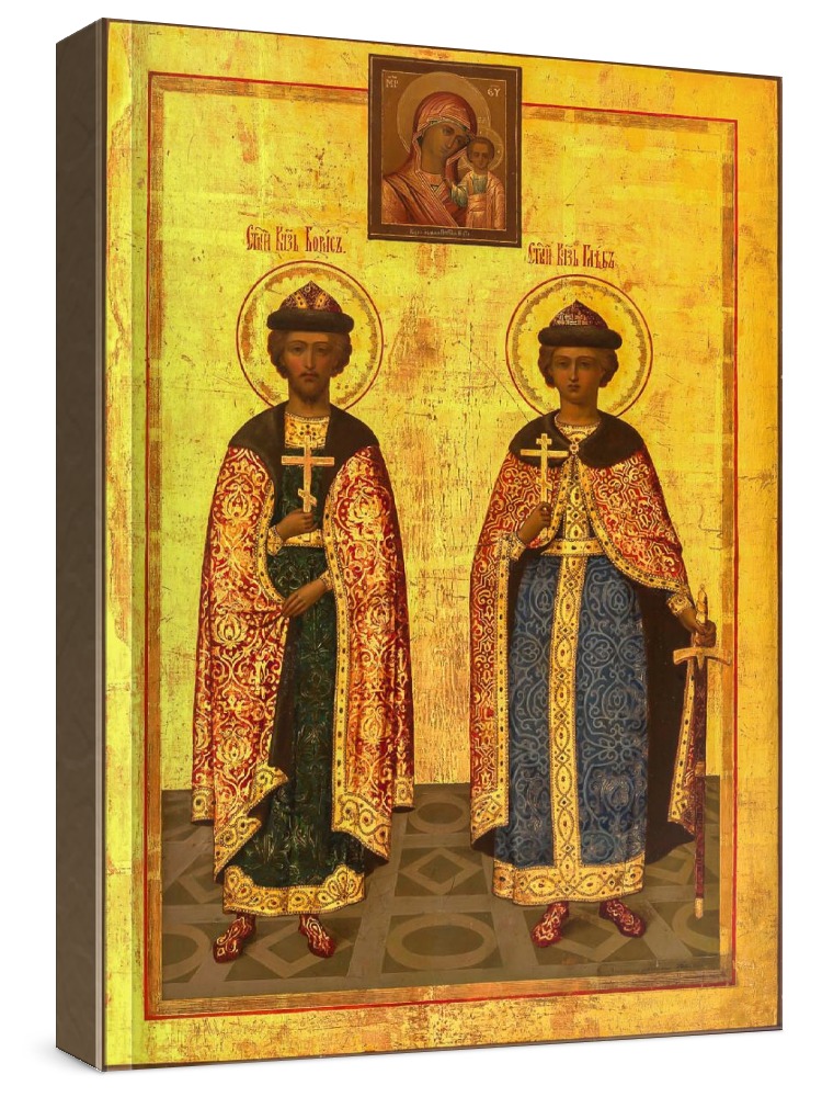 Борис и глеб (икона на дереве). Икона на заказ. Срок изготовления - 5-14 дней. Изображение нанесено на основу из натурального хвойного дерева методом прямой печати (не полиграфия). При работе соблюдены размерные пропорции и цветовая гамма оригинальной старинной иконы. Деревянная основа иконы подвержена искусственному старению. Лик покрыт специальным лаком, что защищает икону от воздействий окружающей среды и обеспечивает хранение иконы в первозданном виде в течение нескольких десятилетий. Цена зависит от размера иконы (высота может незначительно отличаться от указанной величины в связи с точным соблюдением пропорций оригинала): 10x13 - 1500 руб. 30x40 - 5000 руб. 60x80 - 15000 руб. 15x18 - 2250 руб. 40x60 - 8000 руб. 80x120 - 20000 руб. 20x25 - 3000 руб.