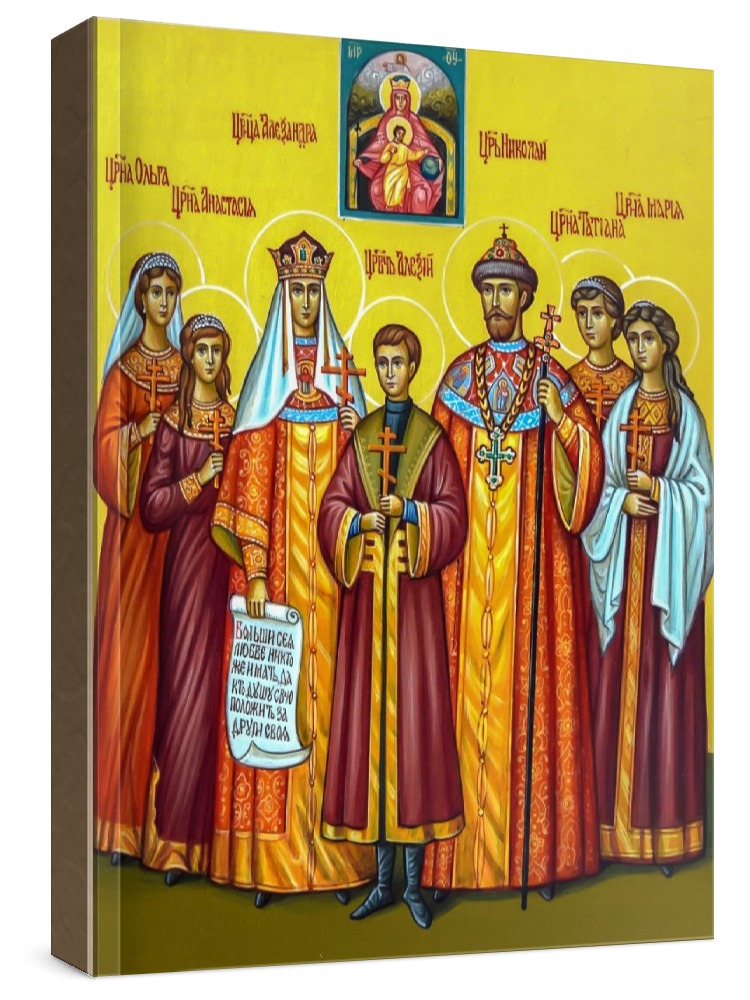 Царская семья (икона на дереве). Икона на заказ. Срок изготовления - 1-2 недели. Изображение нанесено на основу из натурального хвойного дерева методом прямой печати (не полиграфия). Деревянная основа иконы подвержена искусственному старению. Лик покрыт специальным лаком, что защищает икону от воздействий окружающей среды и обеспечивает хранение иконы в первозданном виде в течение нескольких десятилетий. Цена зависит от размера иконы (высота может незначительно отличаться от указанной величины в связи с точным соблюдением пропорций оригинала): 10x13*- 1500 руб. 30x40 - 5000 руб. 60x80 - 15000 руб. 15x18 - 2250 руб. 40x60 - 8000 руб. 80x120 - 20000 руб. 20x25 - 3000 руб. * - изготовление иконы 10х13 см возможно только при заказе от 3 шт.