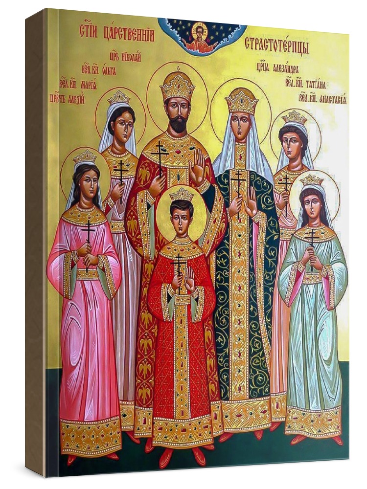 Царская семья (икона на дереве). Икона на заказ. Срок изготовления - 1-2 недели. Изображение нанесено на основу из натурального хвойного дерева методом прямой печати (не полиграфия). Деревянная основа иконы подвержена искусственному старению. Лик покрыт специальным лаком, что защищает икону от воздействий окружающей среды и обеспечивает хранение иконы в первозданном виде в течение нескольких десятилетий. Цена зависит от размера иконы (высота может незначительно отличаться от указанной величины в связи с точным соблюдением пропорций оригинала): 10x13*- 1500 руб. 30x40 - 5000 руб. 60x80 - 15000 руб. 15x18 - 2250 руб. 40x60 - 8000 руб. 80x120 - 20000 руб. 20x25 - 3000 руб. * - изготовление иконы 10х13 см возможно только при заказе от 3 шт.