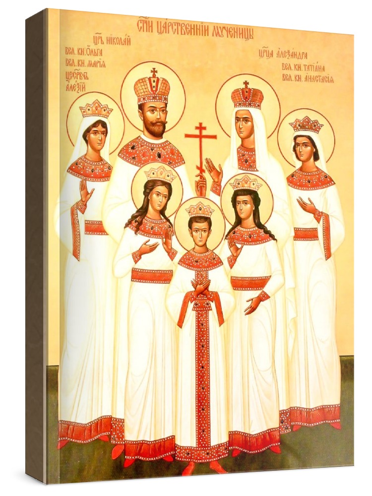 Царская семья (икона на дереве). Икона на заказ. Срок изготовления - 1-2 недели. Изображение нанесено на основу из натурального хвойного дерева методом прямой печати (не полиграфия). Деревянная основа иконы подвержена искусственному старению. Лик покрыт специальным лаком, что защищает икону от воздействий окружающей среды и обеспечивает хранение иконы в первозданном виде в течение нескольких десятилетий. Цена зависит от размера иконы (высота может незначительно отличаться от указанной величины в связи с точным соблюдением пропорций оригинала): 10x13*- 1500 руб. 30x40 - 5000 руб. 60x80 - 15000 руб. 15x18 - 2250 руб. 40x60 - 8000 руб. 80x120 - 20000 руб. 20x25 - 3000 руб. * - изготовление иконы 10х13 см возможно только при заказе от 3 шт.