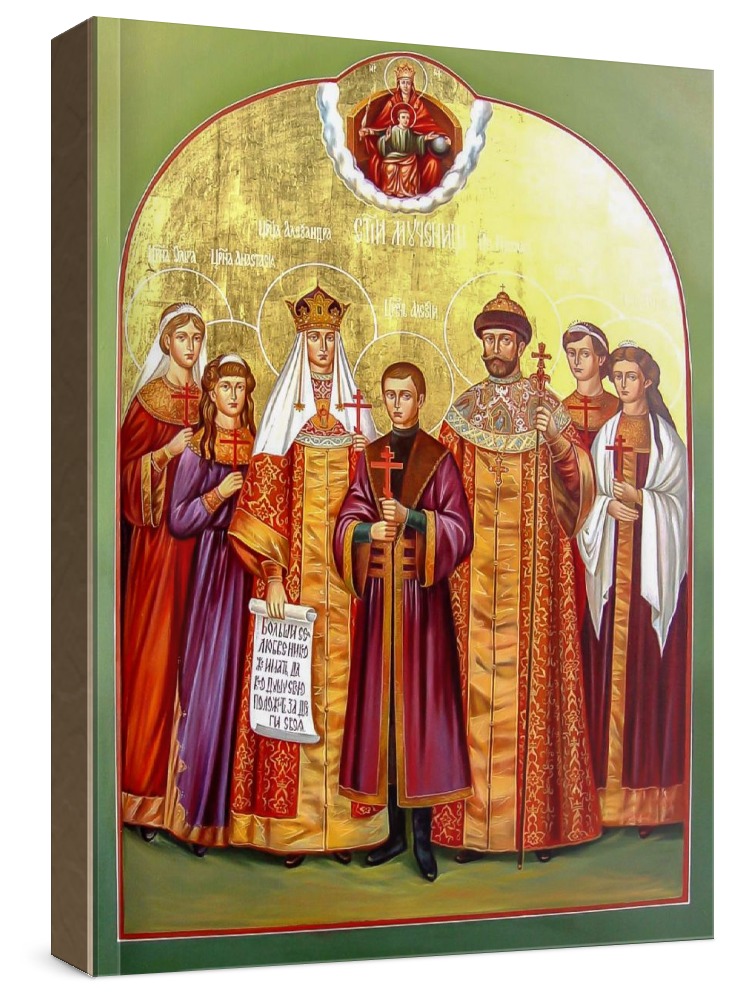 Царская семья (икона на дереве). Икона на заказ. Срок изготовления - 1-2 недели. Изображение нанесено на основу из натурального хвойного дерева методом прямой печати (не полиграфия). Деревянная основа иконы подвержена искусственному старению. Лик покрыт специальным лаком, что защищает икону от воздействий окружающей среды и обеспечивает хранение иконы в первозданном виде в течение нескольких десятилетий. Цена зависит от размера иконы (высота может незначительно отличаться от указанной величины в связи с точным соблюдением пропорций оригинала): 10x13*- 1500 руб. 30x40 - 5000 руб. 60x80 - 15000 руб. 15x18 - 2250 руб. 40x60 - 8000 руб. 80x120 - 20000 руб. 20x25 - 3000 руб. * - изготовление иконы 10х13 см возможно только при заказе от 3 шт.