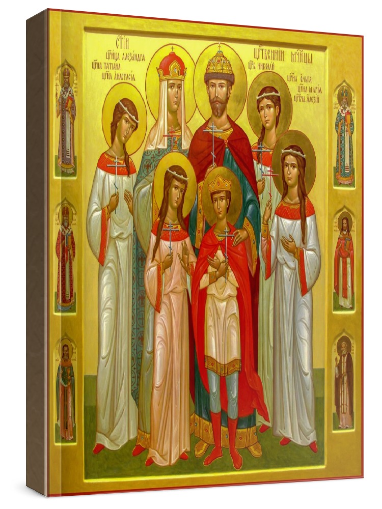 Царская семья (икона на дереве). Икона на заказ. Срок изготовления - 1-2 недели. Изображение нанесено на основу из натурального хвойного дерева методом прямой печати (не полиграфия). Деревянная основа иконы подвержена искусственному старению. Лик покрыт специальным лаком, что защищает икону от воздействий окружающей среды и обеспечивает хранение иконы в первозданном виде в течение нескольких десятилетий. Цена зависит от размера иконы (высота может незначительно отличаться от указанной величины в связи с точным соблюдением пропорций оригинала): 10x13*- 1500 руб. 30x40 - 5000 руб. 60x80 - 15000 руб. 15x18 - 2250 руб. 40x60 - 8000 руб. 80x120 - 20000 руб. 20x25 - 3000 руб. * - изготовление иконы 10х13 см возможно только при заказе от 3 шт.