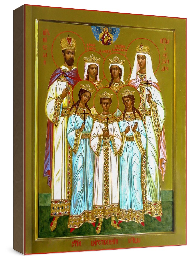 Царская семья (икона на дереве). Икона на заказ. Срок изготовления - 1-2 недели. Изображение нанесено на основу из натурального хвойного дерева методом прямой печати (не полиграфия). Деревянная основа иконы подвержена искусственному старению. Лик покрыт специальным лаком, что защищает икону от воздействий окружающей среды и обеспечивает хранение иконы в первозданном виде в течение нескольких десятилетий. Цена зависит от размера иконы (высота может незначительно отличаться от указанной величины в связи с точным соблюдением пропорций оригинала): 10x13*- 1500 руб. 30x40 - 5000 руб. 60x80 - 15000 руб. 15x18 - 2250 руб. 40x60 - 8000 руб. 80x120 - 20000 руб. 20x25 - 3000 руб. * - изготовление иконы 10х13 см возможно только при заказе от 3 шт.