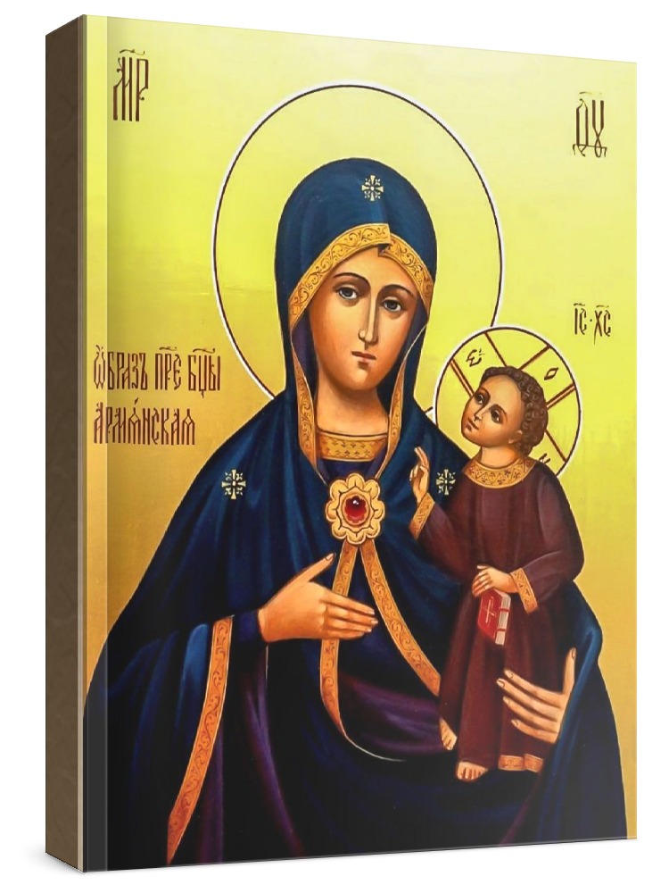 Армянская (икона на дереве). Икона на заказ. Срок изготовления - 1-2 недели. Изображение нанесено на основу из натурального хвойного дерева методом прямой печати. При работе соблюдены размерные пропорции и цветовая гамма оригинальной старинной иконы. Деревянная основа подвержена искусственному старению методом браширования, что делает икону более ценной и максимально похожей на многовековую семейную реликвию. Цена зависит от размера иконы (высота может незначительно отличаться от указанной величины в связи с точным соблюдением пропорций оригинала): 10x13*- 1500 руб. 30x40 - 5000 руб. 60x80 - 15000 руб. 15x18 - 2250 руб. 40x60 - 8000 руб. 80x120 - 20000 руб. 20x25 - 3000 руб. * - изготовление иконы 10х13 см возможно только при заказе от 3 шт.