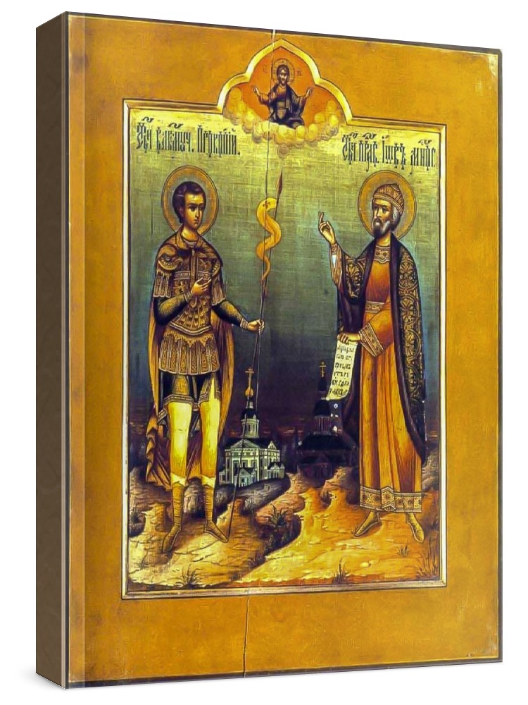 Икона иов многострадальный и прокопий великомученик (копия старинной иконы. Икона на заказ. Срок изготовления - 5-14 дней. Изображение нанесено на основу из натурального хвойного дерева методом прямой печати (не полиграфия). При работе соблюдены размерные пропорции и цветовая гамма оригинальной старинной иконы. Деревянная основа иконы подвержена искусственному старению. Лик покрыт специальным лаком, что защищает икону от воздействий окружающей среды и обеспечивает хранение иконы в первозданном виде в течение нескольких десятилетий. Цена зависит от размера иконы (высота может незначительно отличаться от указанной величины в связи с точным соблюдением пропорций оригинала): 10x13 - 1500 руб. 30x40 - 5000 руб. 60x80 - 15000 руб. 15x18 - 2250 руб. 40x60 - 8000 руб. 80x120 - 20000 руб. 20x25 - 3000 руб.