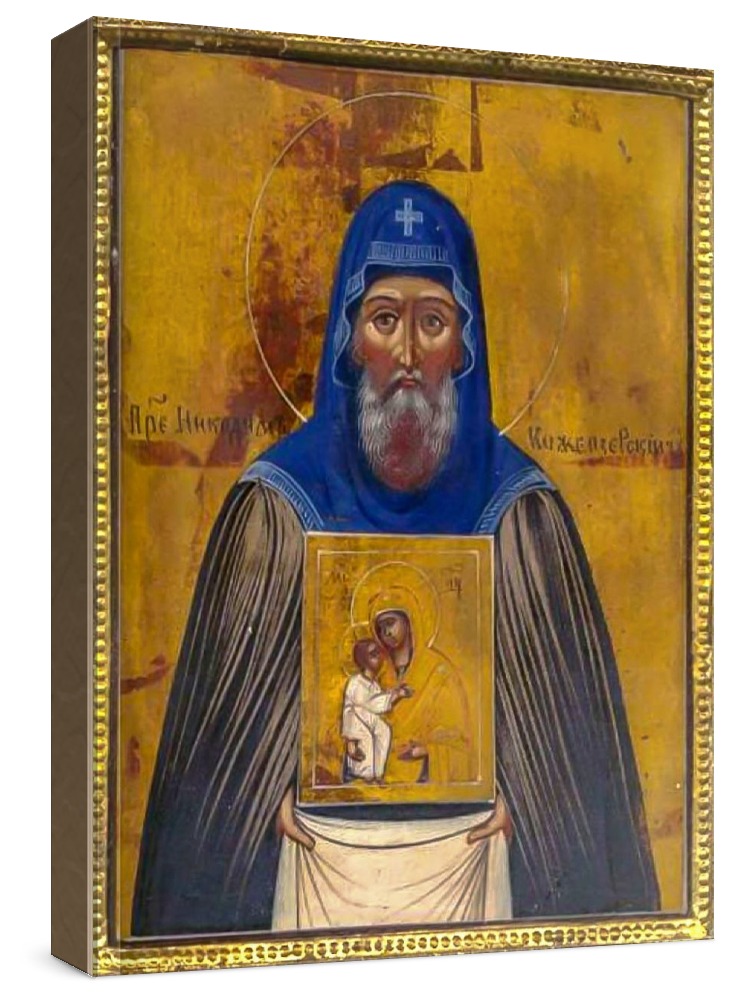 Никодим кожеезерский (икона на дереве). Икона на заказ. Срок изготовления - 5-14 дней. Изображение нанесено на основу из натурального хвойного дерева методом прямой печати (не полиграфия). Деревянная основа иконы подвержена искусственному старению. Лик покрыт специальным лаком, что защищает икону от воздействий окружающей среды и обеспечивает хранение иконы в первозданном виде в течение нескольких десятилетий. Цена зависит от размера иконы (высота может незначительно отличаться от указанной величины в связи с точным соблюдением пропорций образца-оригинала): 10x13 - 1500 руб. 30x40 - 5000 руб. 60x80 - 15000 руб. 15x18 - 2250 руб. 40x60 - 8000 руб. 80x120 - 20000 руб. 20x25 - 3000 руб.