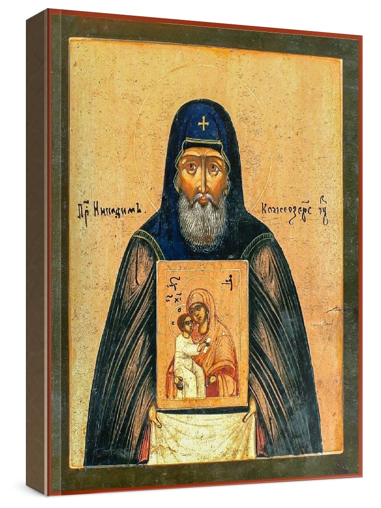 Никодим кожеезерский (икона на дереве). Икона на заказ. Срок изготовления - 5-14 дней. Изображение нанесено на основу из натурального хвойного дерева методом прямой печати (не полиграфия). Деревянная основа иконы подвержена искусственному старению. Лик покрыт специальным лаком, что защищает икону от воздействий окружающей среды и обеспечивает хранение иконы в первозданном виде в течение нескольких десятилетий. Цена зависит от размера иконы (высота может незначительно отличаться от указанной величины в связи с точным соблюдением пропорций образца-оригинала): 10x13 - 1500 руб. 30x40 - 5000 руб. 60x80 - 15000 руб. 15x18 - 2250 руб. 40x60 - 8000 руб. 80x120 - 20000 руб. 20x25 - 3000 руб.