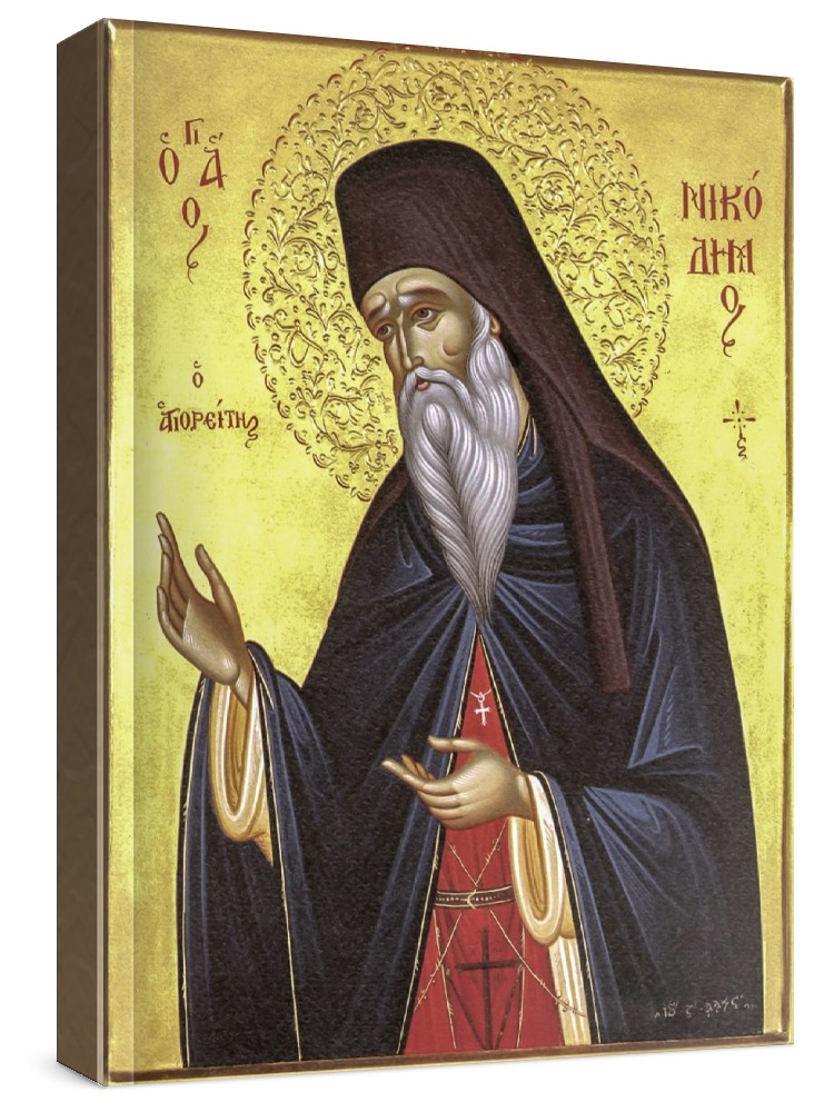 Никодим святогорец (икона на дереве). Икона на заказ. Срок изготовления - 5-14 дней. Изображение нанесено на основу из натурального хвойного дерева методом прямой печати (не полиграфия). Деревянная основа иконы подвержена искусственному старению. Лик покрыт специальным лаком, что защищает икону от воздействий окружающей среды и обеспечивает хранение иконы в первозданном виде в течение нескольких десятилетий. Цена зависит от размера иконы (высота может незначительно отличаться от указанной величины в связи с точным соблюдением пропорций образца-оригинала): 10x13 - 1500 руб. 30x40 - 5000 руб. 60x80 - 15000 руб. 15x18 - 2250 руб. 40x60 - 8000 руб. 80x120 - 20000 руб. 20x25 - 3000 руб.